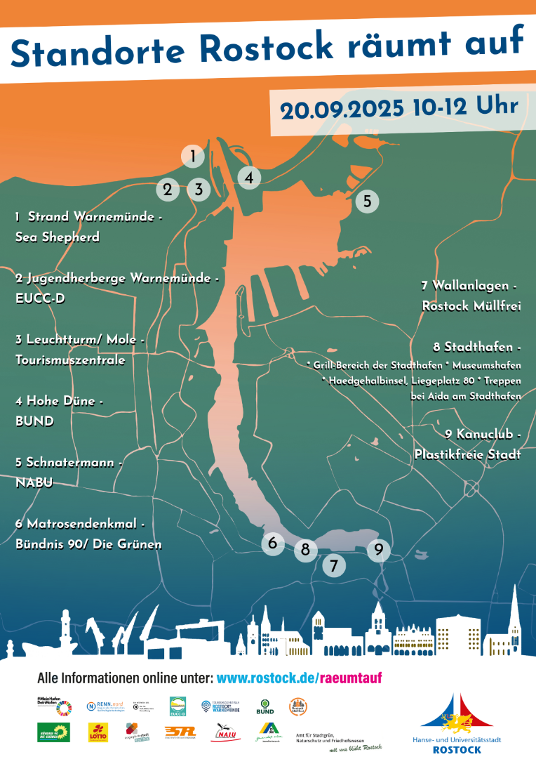 Unterstützt wird die Aktion "Rostock räumt auf" von Lotto MV, Veolia und der Stadtreinigung Rostock.